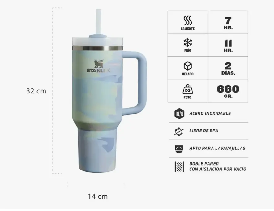 💪 Su mango ergonómico facilita el agarre y lo convierte en el aliado ideal para llevar a todas partes: al trabajo, a la universidad, a tus paseos o viajes. 🌀 La tapa giratoria y la bombilla reutilizable hacen que cada sorbo sea cómodo y ecológico 🌍, ayudándote a cuidar el medioambiente sin renunciar al estilo.